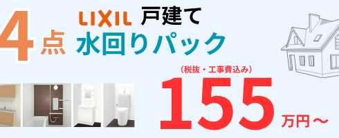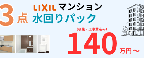 横浜テックワンサービスが提供するお得な戸建て向け水まわり3点パックは、LIXILの高品質な水まわり設備を驚きの価格でご提供!お家のリフォームにぴったりです。