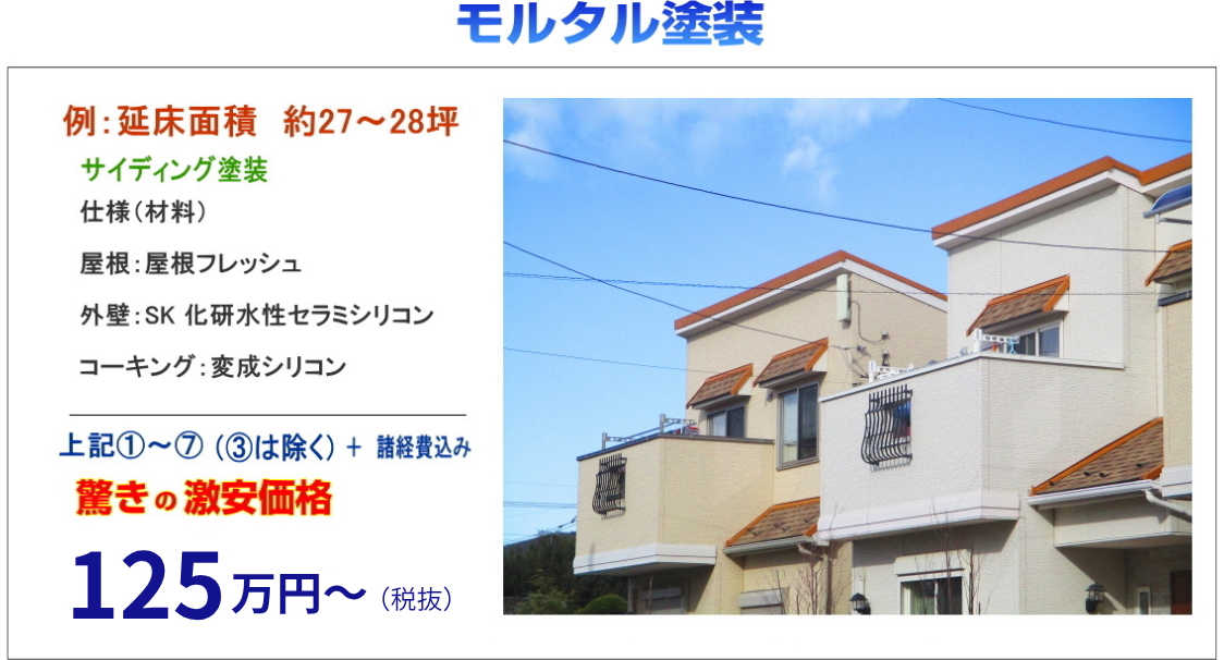 弊社の外壁塗装工事では、既存のモルタルやサイディングの美観を回復させ、耐久性を向上。お客様の住まいを新鮮な印象へと生まれ変わらせ、さらなる快適な暮らしを実現いたします。信頼と安心のサービスでお手伝いします。