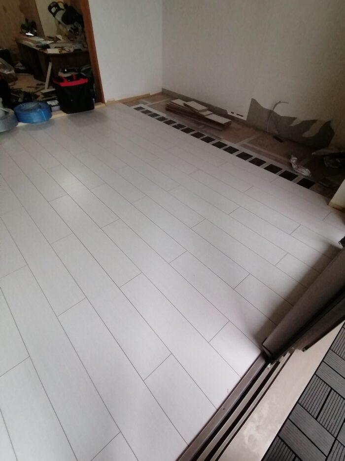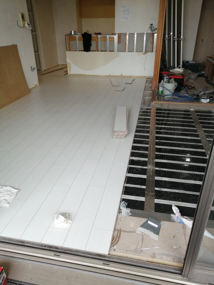 その上に新しいフローリングを丁寧に貼り付けていき、見た目も機能も一新。