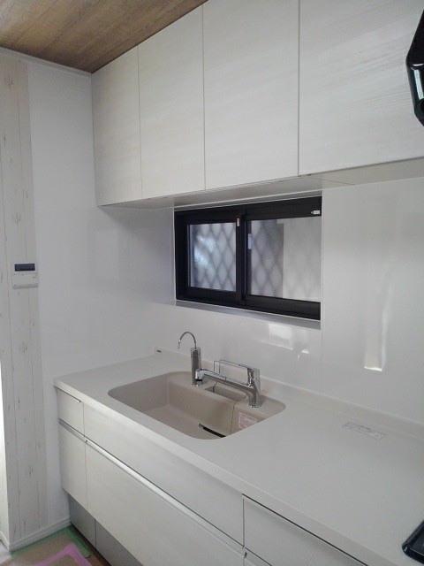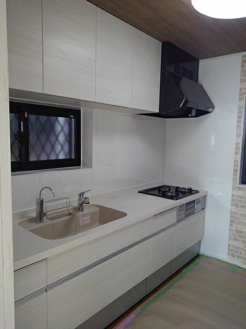 キッチンが白くなり、台所全体が凄く明るくなりましたね。 今までは扉に取ってがありましたが 新しい扉にはなく(ライントッテ)、そればまたスッキリした感じでイイですね☆